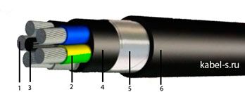 Элементы конструкции кабеля АПвБбШв 3х185+1х95