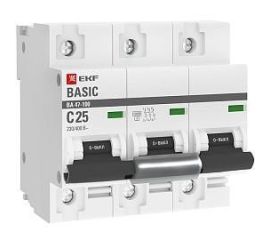 Выключатель автоматический 25А 3П трехполюсный характеристика B 4,5kA ВА 47-29 Basic mcb4729-3-25-B EKF от поставщика КабельСпецСтрой