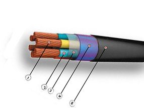 - Изоляция из резины на основе натурального и бутадиенового каучуков, маркировка жил: