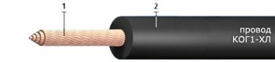 Кабель КОГ1-ХЛ 1,5 – медный кабель с резиновой изоляцией. Достоинство этого кабеля низкая гигроскопичность (впитывание влаги) и гибкость (6-ой класс) благодаря изоляции из резины. Резина типа РТИШМ применяется в качестве изоляционно-защитной оболочки кабеля, кроме того резина этой марки морозостойкая (до -60°C). Кабель КОГ1-ХЛ 1,5 рассчитан на напряжение 220 В переменного тока и 700 В – постоянного, частота 50 Гц.