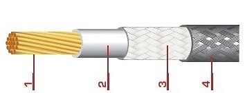 - Оболочка-оплётка из полиэфирных нитей, покрытых кремнийорганическим лаком;