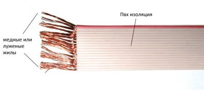 1. Жилы из меди или луженые располагаются параллельно в одной плоскости;