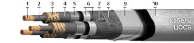 Конструкция кабеля ЦОСБ 3х300 предусматривает, чтобы каждая жила была заключена в отдельную оболочку. Делается это для того, чтобы предотвратить повреждения изоляции из-за сильного электрического поля.