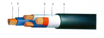 - Скрутка – изолированные жилы 2-х, 3-х, 4-х и 5-ти жильных кабелей скручены в сердечник вокруг жгута из ПВХ пластиката;